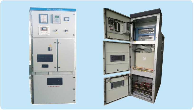 針對如此復雜的系統(tǒng),難以孤立的使用某種或某幾種過電壓保護裝來抑制各種類型的系統(tǒng)過電壓,且這些不同廠家生產(chǎn)的過電壓保護產(chǎn)品,因保護特性不能相互匹配,而無法徹底有效的抑制系統(tǒng)過電壓。針對目前中壓系統(tǒng)過電壓防治的現(xiàn)狀,我公司研制生產(chǎn)了系統(tǒng)過電壓抑制柜/聚優(yōu)柜,簡稱抑制柜/聚優(yōu)柜,型號AYTYG-Y/J,該柜可消除系統(tǒng)中過電壓保護元件及裝罝的保護死區(qū),優(yōu)化系統(tǒng)過電壓的保護特性。
